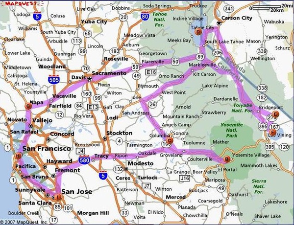 (加州很大 一張加州地圖 原則上 只有州際公路 和一些高速公路 有畫在上面